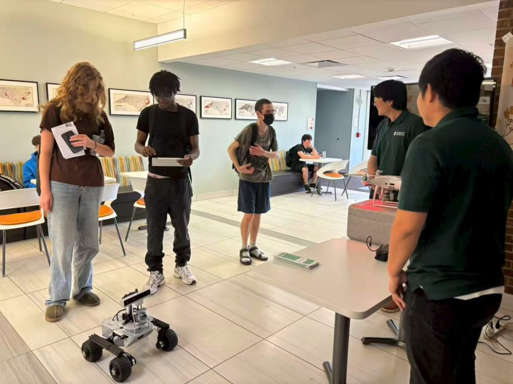 Unmanned Ground Vehicle (UGV) – showcasing ground-based robotics for field data collection and geospatial applications. Students had chances to get hands-on experience by controlling the vehicle themselves, discovering how robotics can be applied in real-world geospatial research.